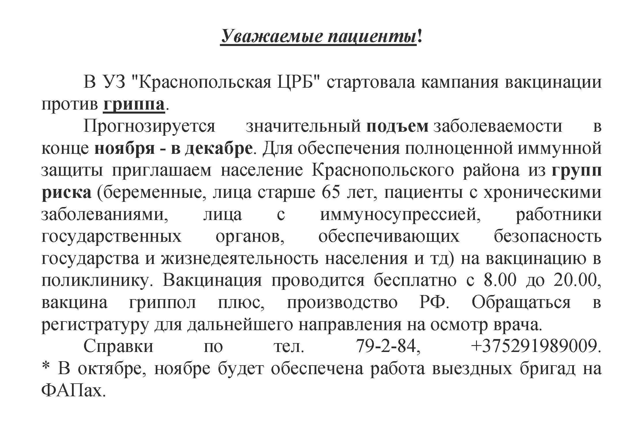 Уважаемые пациенты, относящиеся к УЗ«Краснопольская ЦРБ»!
